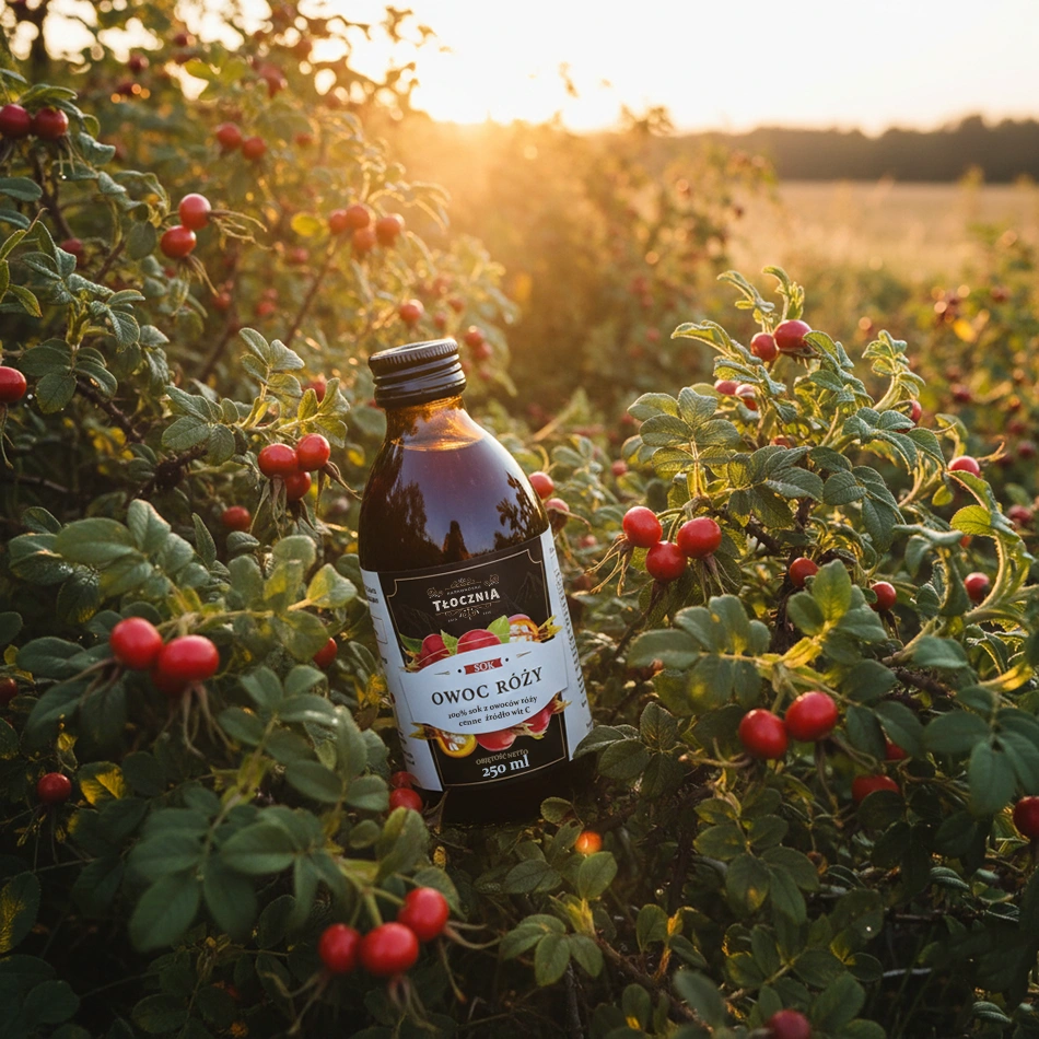 Sok z owoców róży 100% – bogactwo naturalnej witaminy C.